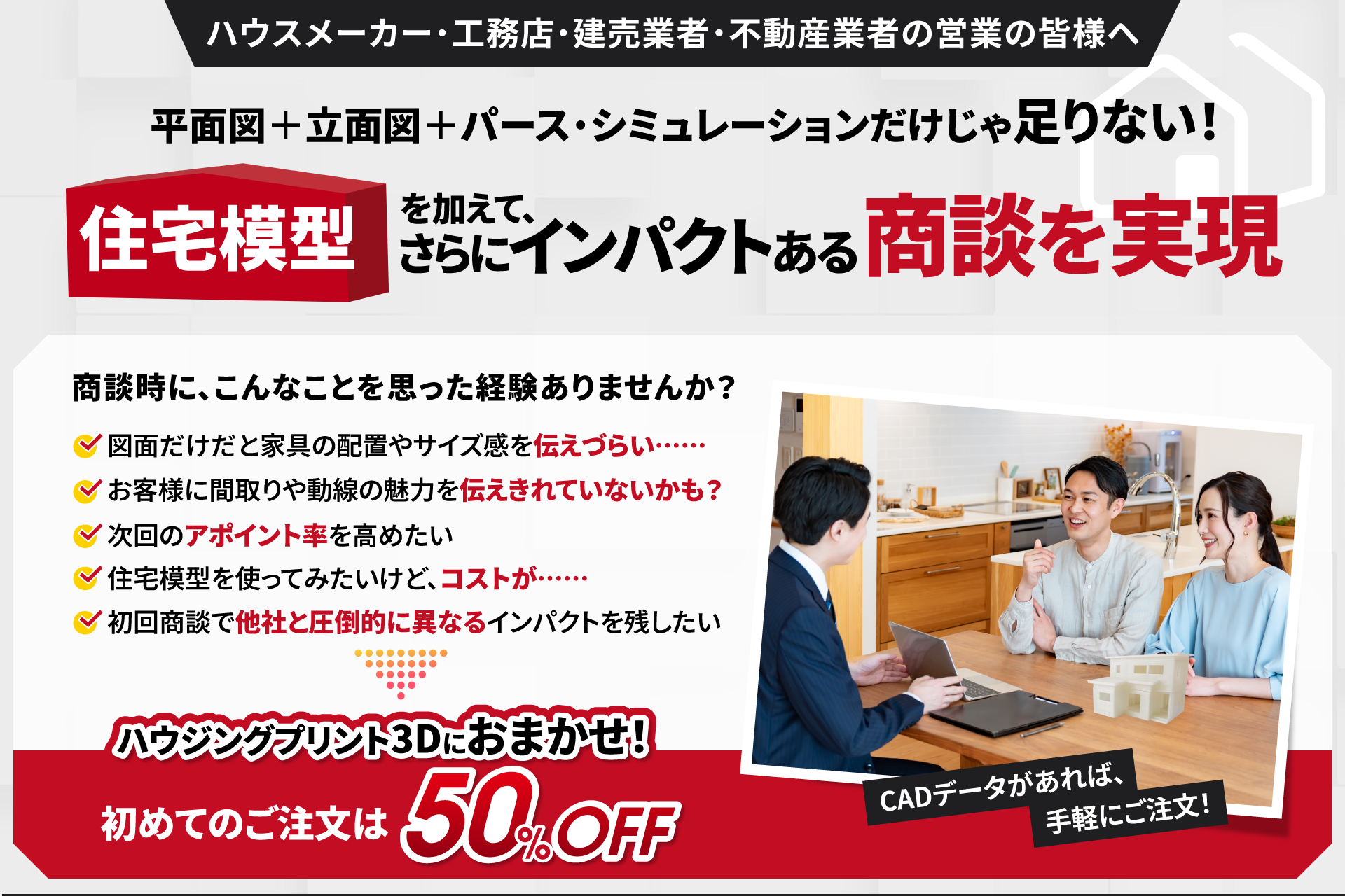 しかし、画面の中での3Dだけでは一般の方にはサイズ感や動線などプロのようにイメージできないという課題もあります。